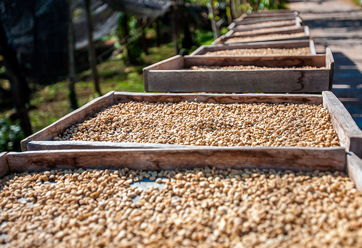 Kaffen bearbejdes på to måder: den våde eller den tørre metode, sidstnævnte også kaldet uvasket.