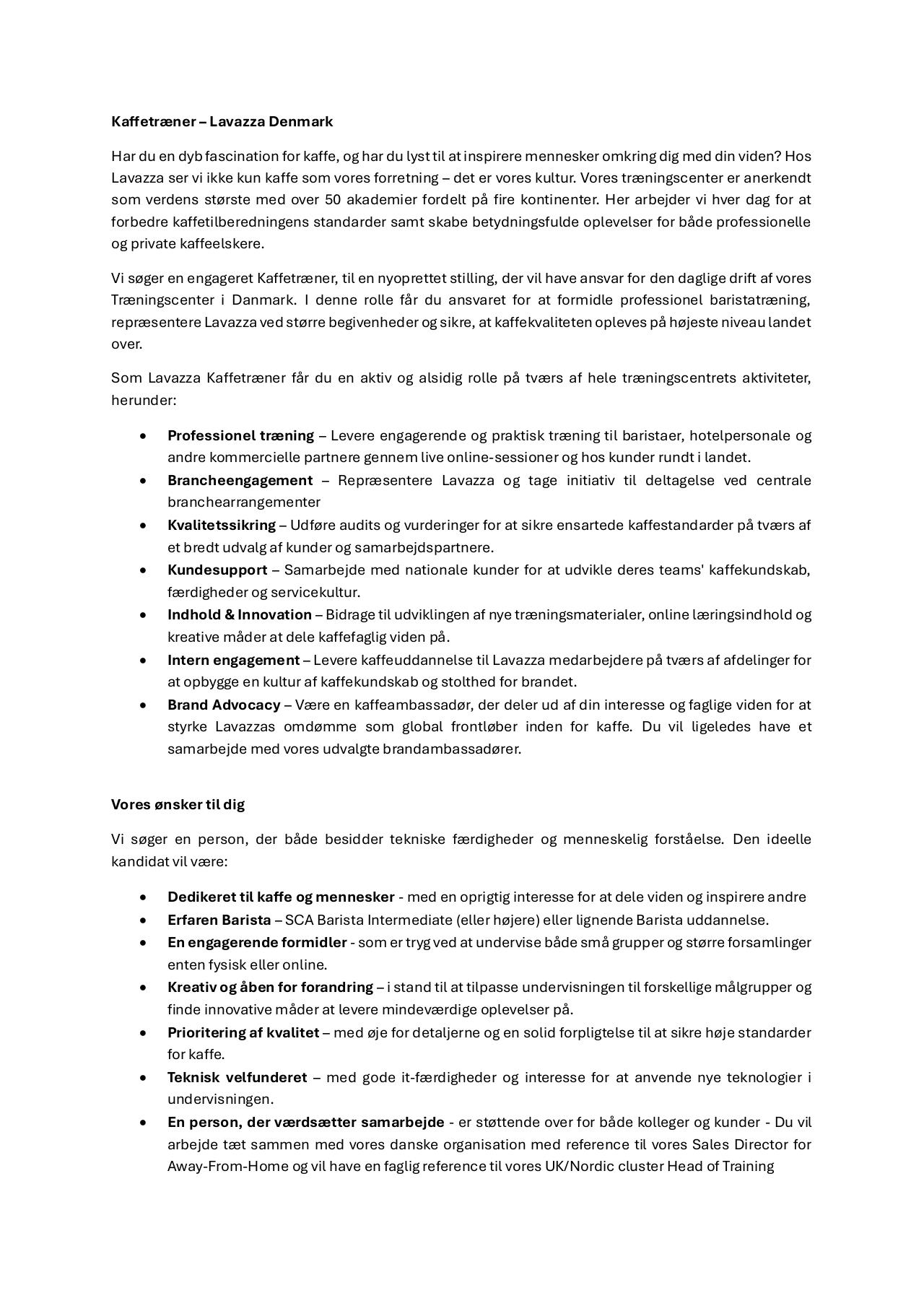 Du er altid velkommen til at sende os en uopfordret ansøgning på https://jobs.lavazza.com