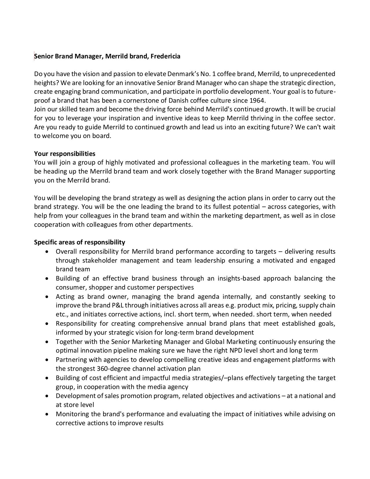 Nedenfor kan du se, hvilke stillinger vi for øjeblikket har slået op hos Merrild Lavazza Kaffe.